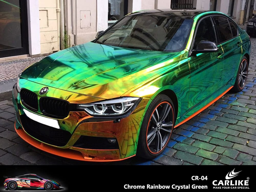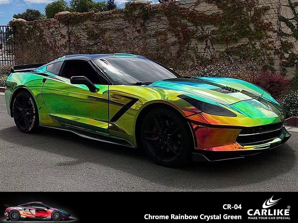 CARLIKE CR-04 Chrome Rainbow Crystal Green Vinyl Wrap
